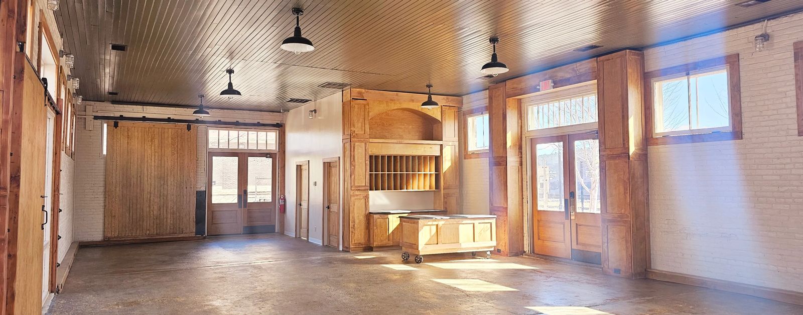 Located on the West end of the campus next to BarMT Tasting room, our historic mail building is ideal for smaller gatherings of 50 or less. When used in combination with the main Depot building, this space can serve as a beautiful area to host rehearsal dinners, family brunch, bachelor/bachelorette celebrations or just additional space for dressing or family gathering.